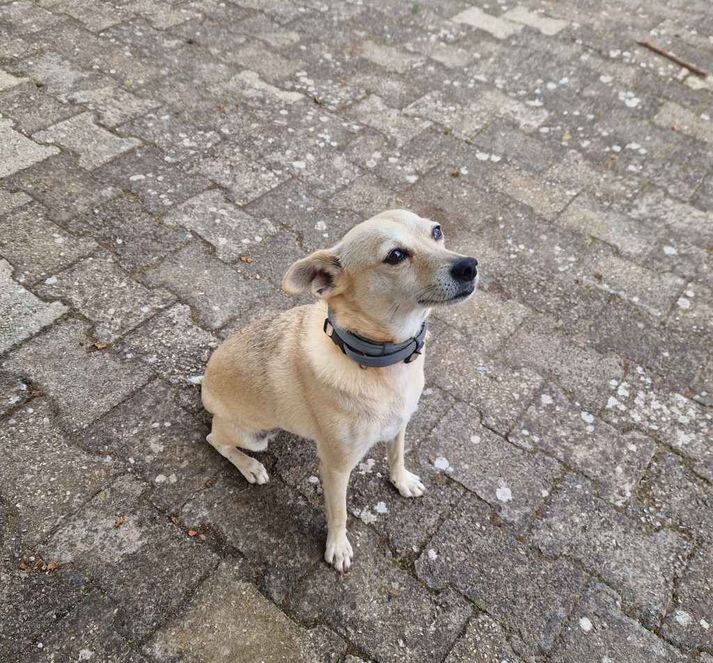 Little Chalkie often comes to the tai chi class that I attend in Portugal whilst I am there. Here she is looking up at us. She’s quite an inspiration…