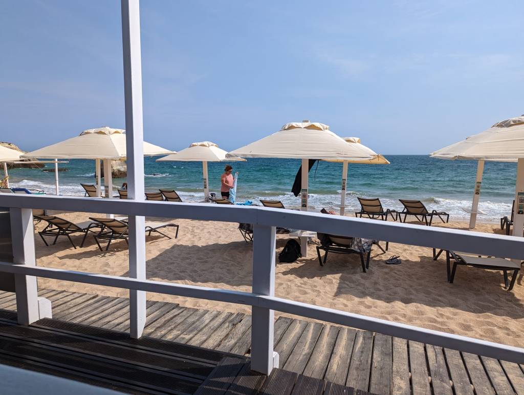 In deeper waters near our hotel the evening sea is deep, black and sleek as ink.