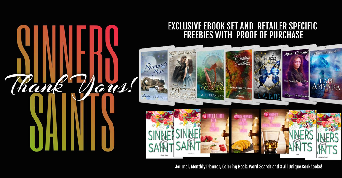 NOW FOR INCENTIVES: The Sinners want to thank all you Saints for ordering SINNERS & SAINTS on Nook and Apple, so they’re giving thank you gifts!! (available until Jan 17th) It just takes 2 easy steps!